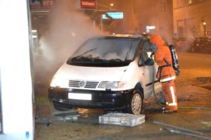 Brandkåren larmades vid 01-tiden till en bilbrand på Ö Förstadsgatan i Malmö. När brandstyrkan från centrumstationen kom fram började bilen köra med startmotorn. Fyra brandmän höll emot fram på den brinnande bilen medan en femte hämtade slänghäckar som lades framför hjulen. I sista stund med en marginal på några centimeter hindrades den brinnande bilen från att braka in i en butikslokal. Skyltfönstren till butikslokalen gick ända ner till marken vilket med stor säkerhet medfört att den brinnande bilen lätt forcerat dem, om inte brandmännen fått stopp på den i sista stund. Vissa vittnesuppgifter tyder på att någon anlagt branden i bilen så polisen på platsen skrev en anmälan om brott.