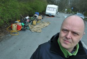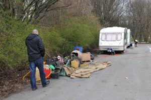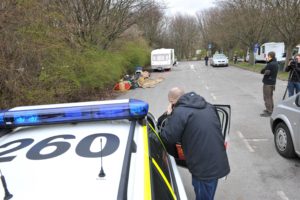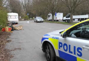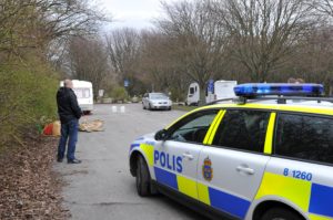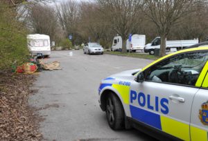 Brittiska asfalts arbetare omhändertagna av polis i ny människobrottsutredning. Asfalts arbetarna omhändertogs vid ett stenläggningsarbete på Rudbäcksgatan vid 13.30-tiden. Polisen kontrollerade deras läger utanför Sibbarps camping vid 14-tiden. På vissa av bilderna polisen Leif Fransson