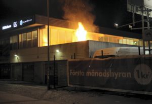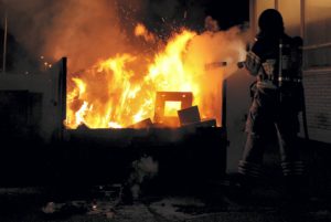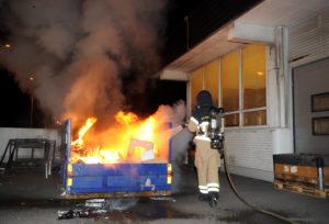 Brandpersonal från Centrumstationen larmades vid 03.30-tiden en containerbrand nära ett tak vid en industrifastighet på Lundavägen i Malmö. Brandpersonalen fick först kapa av ett lås till grindar för att komma in och släcka den brinnande containern. Vitten på platsen såg en misstänkt man med en trehjulig moped i närheten av containern när den började brinna. Polis letade i området runt Sydsvenskan huset efter mannen utan att finna honom.