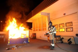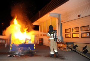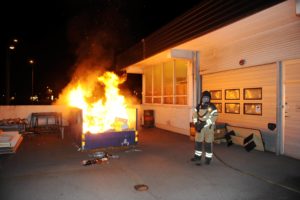 Containerbrand nära tak på Lundavägen