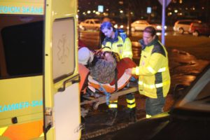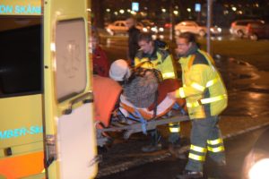 Kvinnlig cyklist påkörd av bilist på Stadiongatan vid Lorensborgsgatan i kväll klockan 18.30. Kvinnan fördes till sjukhus med ambulans.