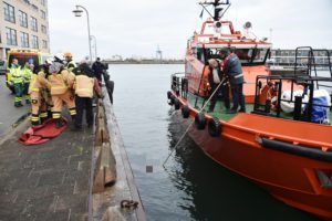 Räddningstjänsten larmades vid 15-tiden till en drunkning vid Ångbåtsbron i Malmö. När räddningsstyrkan från centrumstationen kom fram var lotsbåtens personal på plats och höll tag i en flytande kropp några meter från kajen. Ytbärgare från räddningstjänsten hoppade i vattnet och med ett räddningsnät lyftes sedan den livlösa kroppen upp på kajen. Snabbt kunde ambulans och brandpersonal konstatera att personen man bärgat upp var avliden. Polisen tog över ansvaret och utredningarbetet på platsen. I nuläget är det oklart hur personen hamnat i vattnet. Enligt uppgift har personen inte legat i vattnet någon längre tid.