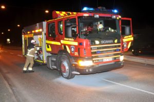 En brandbil på utryckning från Burlövs stationen började vid 00.50-tiden att brinna på Lundavägen vid Strömgatan. Brandbilen var på väg till en trafikolycka och när de anlände på olycksplatsen upptäckte brandpersonalen att det brann i brandbilens framhjul. Men när nöden är som störst är hjälpen som närmast. En av brandmännen tog snabbt fram en större pulversläckare från brandbilens skåp och släckte branden. Troligen handlar det om någon form av överhettning i bromsarna säger en i brandstyrkan. Efter att man klarat av trafikolycka fick brandpersonalen skjuts tillbaka till brandstationen i Burlöv för att hämta en ny brandbil. Den brandskadade brandbilen fick bärgas från platsen.