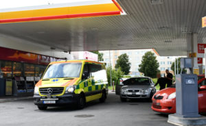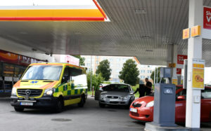 En fotgängare blev vid 16.50-tiden påkörd av en bil på Shell macken Holma