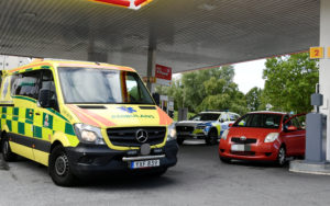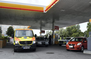 En fotgängare blev vid 16.50-tiden påkörd av en bil på Shell macken Holma. Fotgängaren skadades i armen och fick föras till sjukhus med ambulans. Polis kom till platsen och förhörde bilföraren.