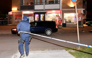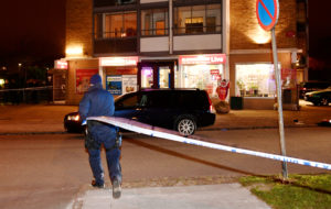 En person skottskadades livshotande vid en skjutning på Per Albin Hanssons väg vid 21.35-tiden. När polis och ambulans kom fram såg man en livlös person liggande på gatan. Ambulanspersonal lastade den svårt skottskadade mannen och körde till akuten. Hela Per Albin Hanssons väg spärrades och även en cykelbana söder om platsen där den skjutne anträffades. Under kvällen kommer polisens tekniker att undersöka platsen utanför en jourbutik där den skjutne anträffades. Enligt uppgift skall flertalet skott ha avlossats på platsen. Polispersonal markerade vid 22-tiden flera tomhylsor på trottoaren. Polispersonal på platsen förhörde flera personer som kan ha sett hela eller delar av händelseförloppet. Vad som ligger bakom skjutningen vet polisen inte i nuläget.