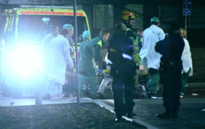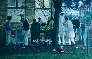 Ambulans, brandkår och polis larmades vid 22.30-tiden till psyken i Malmö där en person fallit ut från byggnaden. Personal från akuten kom ut och hjälpte till med sjukvården av den svårt skadade personen som låg strax intill byggnaden vid en gräsmatta. Efter en stund rullades en bår med den skadade in på akuten. Polisen spärrade av ett område runt psyken när ambulans och sjukvårdspersonal jobbade på platsen. Polispersonal gick vid 23-tiden i på psyken för att förhöra personal om händelsen. I nuläget är det oklart hur svåra skador personen ådrog sig vid fallet. Vad som hänt kommer nu polisen att försöka utreda.