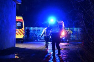 En person skadades allvarligt efter att han hoppat från en brinnande lägenhet på fjärde våningen i Malmö. Brandkåren larmades via det automatiska brandlarmet vid 20.54 till kommunens boende på Norra Grängesbergsgatan i Malmö. På väg till platsen fick brandstyrkan reda på att det brann i en lägenhet på fjärde våningen. När brandpersonalen kom fram hade redan den som bodde i lägenheten hoppat ut och hamnat på en gångbana. Brand och ambulanspersonal tog hand om den skadade mannen. Rökdykare tog sig in i lägenheten och släckte branden. Inga andra personer på boendet skadades vid branden. En väktare finns på plats på boendet men kunde inte själv släcka den kraftiga branden. 2023-12-23 (https://www.pppress.se/nyhet/man-forsokte-ta-sig-ut-fran-boende-foll-5-vaningar/) föll en annan starkt påverkad boende ut från en lägenhet på samma boende. Den gången var polisen på plats och bevittnade fallet. Om kommunen efter kvällens brand kommer att se över sina rutiner är oklart.