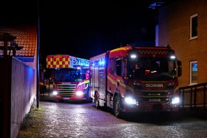 Brand i vårdanläggning/boende på Kirsebergs torg i natt vid 03.36 i natt. Brandkåren fick automatiskt brandlarm från adressen. På vägen fram fick brandpersonalen reda på att det brann i en lägenhet. När första brandstyrkan kom fram kunde man se lågor och rök från andra våningen. Rökdykare skickades in för genomsökning och livräddning. Efter en stund hittades en svårt rökskadad person som togs ut till ambulanspersonal. Efter detta kunde rökdykarna släcka branden. I nuläget verkar de andra på boendet att ha klarat sig undan utan rökskador. Vad som orsakat branden i lägenheten är oklart i nuläget. Brandpersonal kommer att vara kvar på platsen en timmes tid för utvädring och efterkontroll. Polis kommer att skickas till sjukhuset för att försöka förhöra den som befunnit sig i lägenheten.