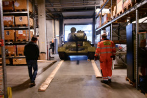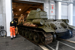 En T-34 stridsvagn från Sovjeteran invaderade vid 12-tiden Malmömässan Hyllie. Den Sovjetiska stridsvagnen från 1944 ägs av en samlare i Hallaryd i Småland och kom till mässan med en biltransport inför en motormässa som startar nästa lördag. Det blev trångt när den 34 ton tunga besten skulle köras in till sin monter. Flertalet personer fick hjälpas åt att lägga ut brädor för att inte mässans golv skulle skadas av stridsvagnens metalband. Men efter ca 30 minuter var vagnen på plats inne i mässhallen och som tur var hade man tillfälligt stängt av brandlarmet då en hel del dieselrök hade samlats i den stora mässhallens tak.