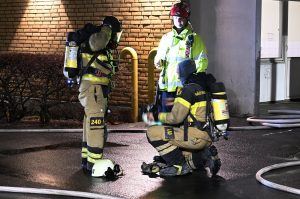 Brandkåren larmades 18.05 till en lägenhetsbrand på Koralgatan Lindängen Malmö. När första brandstyrkan kom fram såg man rök från en lägenhet på andra våningen. Rökdykare skickades in för livräddning och brandsläckning. Efter en kort stund hittade rökdykarna en medvetslös person liggande i lägenheten. Personen bars ut till ambulanspersonal som lastade patienten på bår för transport till sjukhus. Själva branden kunde sedan snabbt släckas med slangledning av rökdykarna. På gården spärrade polisen av ett område för att underlätta brandkårens arbete. Vid 19-tiden höll brandpersonal på med eftersläckning på platsen. Vad som orsakat lägenhetsbranden är i nuläget oklart. Polisen kommer att spärra av lägenheten för polisteknisk undersökning. I nuläget är det oklart om skadorna på den person rökdykarna tog ut ur lägenheten. Sent på nyårsafton meddelade polisen att kvinnan som togs ut ur lägenheten hade avlidit på sjukhuset av sina skador.