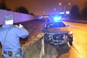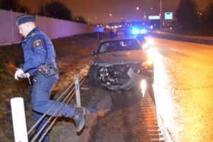 En våldsam singelolycka inträffade vid 00.15-tiden på Inre Ringvägens förlängning mellan Lindeborgs trafikplats och Pildammsvägen. En yngling sladdade i hög fart in i mittbarriären för att sedan krascha in i vajerräckena på vägens andra sida. Polisen larmades fört till olyckan av både närboende och bilföraren själv. Efter en stund rekvirerades brandkåren till platsen för att sanera vid den totaldemolerade bilen. I nuläget är det oklart vad som orsakat olyckan. Bilföraren skadades inte vid olyckan.