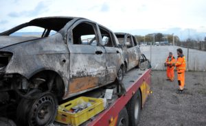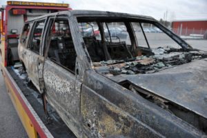 Flera bilar totalförstörda vid garagebrand