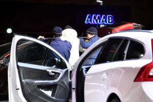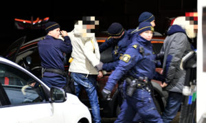 En polispatrull fann vid 21.40-tiden en efterlyst bil på Shell macken Lockarp. Fler polispatruller kallades till platsen då bilen var i sällskap med en annan bil med flera personer i. Totalt omhändertog polisen fyra personer från de båda bilarna. I en av bilarna fann polisen registreringsskyltar som inte hörde till den aktuella bilen. Enligt uppgift på platsen kommer personerna att transporteras in till polishuset för förhör.