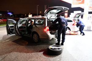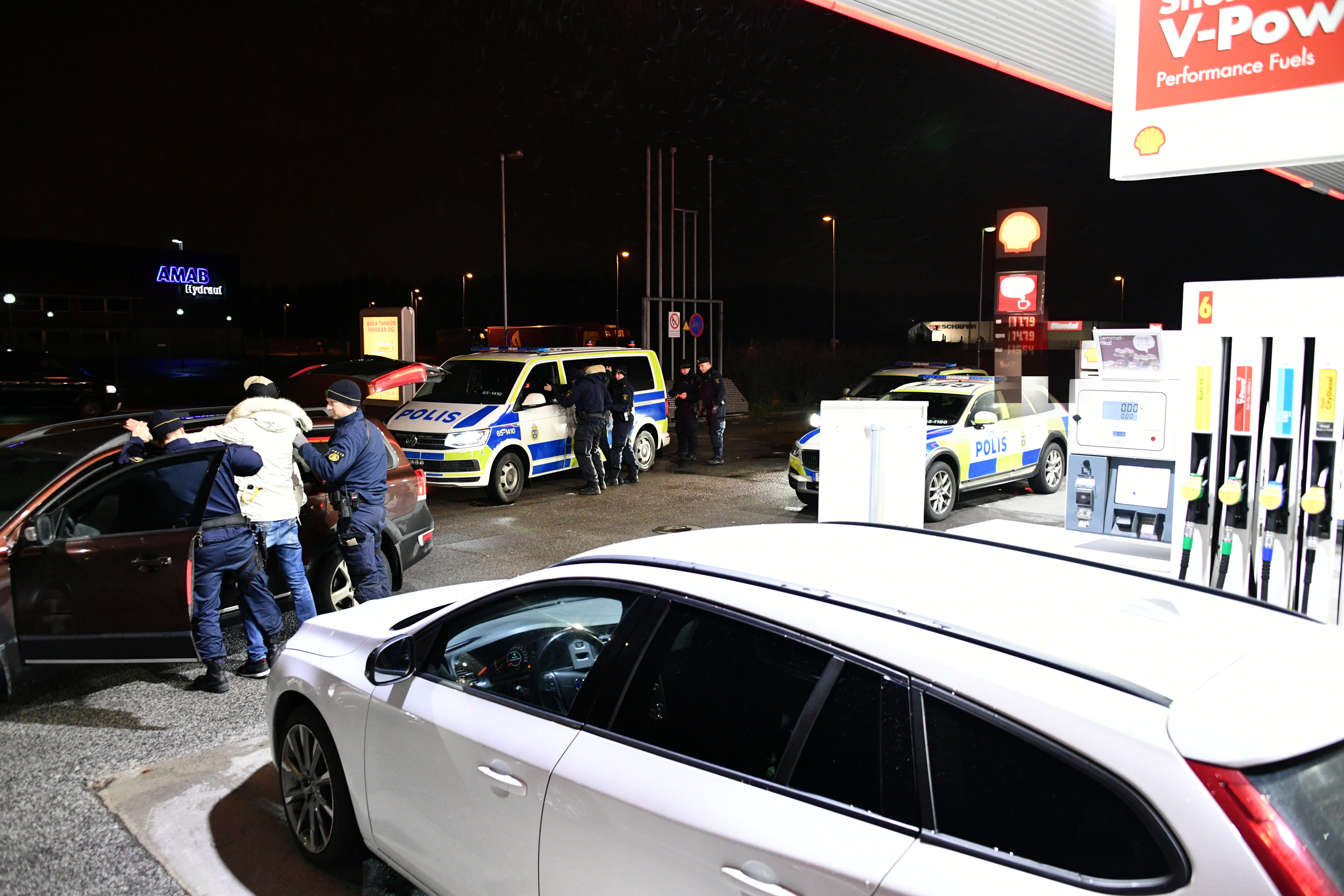 Flera personer i två bilar omhändertogs av polis på Shell Lockarp