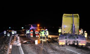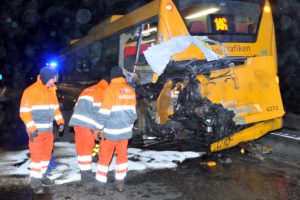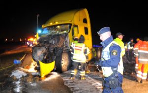 Flera personer fördes till sjukhus med ambulanser efter en trafikolycka mellan lastbil och buss på E6:an i höjd med Vellinge vid 17.15-tiden. En dragbil körde i hög fart in i bussen som precis kört ut från en busshållplats på motorvägen. Kollisionen blev kraftig och tre passagerare som satt bak i bussen skadades vid olyckan. Även lastbilsföraren skadades och fick åka till sjukhus med ambulans. I nuläget tros olyckan bero på att lastbilsföraren missbedömt bussens fart. Kilometerlånga köer bildades bakom olycksplatsen och bärgningsarbetet drog ut på tiden då både bussen och lastbilen hade fått omfattande skador vid den våldsamma kraschen. En hel del diesel från både bussen och lastbilen rann ut på vägbanan och brandpersonal fick sanera såväl diken som vägbana från dieselolja.