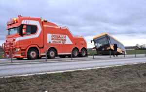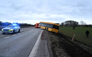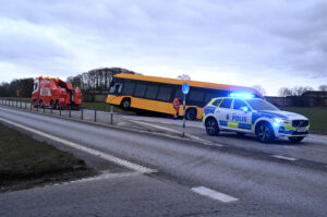 Föraren misstänkt efter regionbuss hamnat i diket på väg 11 Dalby