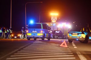 Frontalkrock mellan två bilar på Sallerupsvägen vid Yttre Ringvägen
