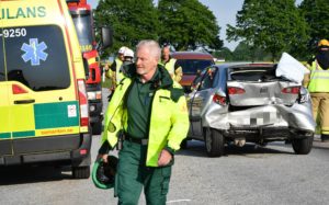 Trafikolycka mellan två personbilar på väg 104 mellan E6-an och Kävlinge i eftermiddag vid 17.30-tiden. Fyra personer skadades vid olyckan och vägen fick stängas helt vid räddnings och bärgningsarbetet. Olyckan skedde genom att en bilist skulle genomföra en vänstersväng när den bakomvarande bilisten inte uppmärksammade att bilen stannat utan brakade in bakifrån i den svängande bilen. I nuläget är det oklart vilken typ av skador patienterna ådrog sig vid olyckan.