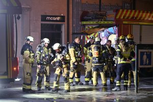 Brandkåren larmades vid 01.13 i natt via automatiskt brandlarm till Caroli city. När brandstyrkan kom fram var det rök i garaget. Rökdykare sändes ner för att kontrollera. Efter en stund hade rökdykarna lokaliserat en brinnande bil och påbörjat släckning. Garaget är stort och rök hade spritt sig till stora delar av det underjordiska garaget. Även sprinklersystemet hade utlöst så en del vatten fans i garaget. Under natten höll brandpersonalen på att vädra ut brandrök ur garaget. I nuläget verkar inga av butikerna ha drabbats av röken. Även ett hotell ligger i bostadskomplexet men hotellet värkar ha klarat sig undan röken. Inga personer uppges ha skadats vid branden. Polis kom till platsen men i nuläget vet man inte hur bilbranden i garaget startat.