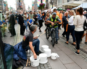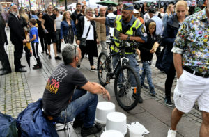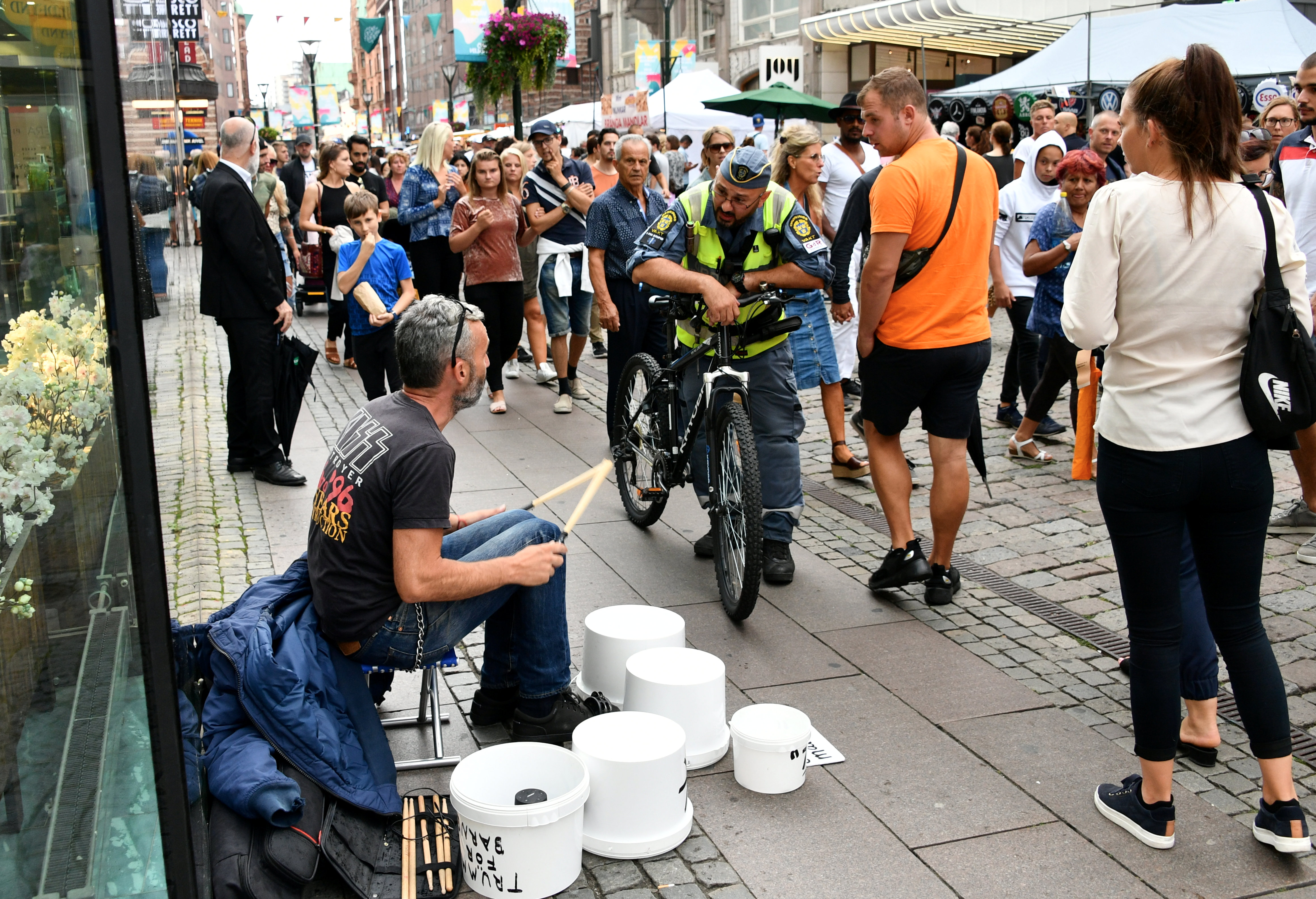 Malmöfestivalens ordningsvakter körde bort gatumusikanter från festivalområdet vid 17.40-tiden Enligt uppgift får gatumusikanter utan tillstånd inte befinna sig inne på festivalområdet.