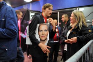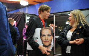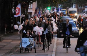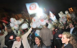 Glada danskar efter socialdemokraternas valvinst i Danmark.