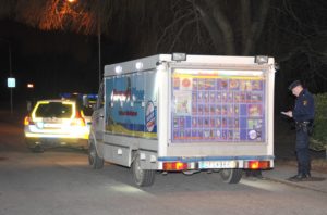 En glassbil rånades av flera personer på Hamngatan i Burlöv vid 21-tiden i kväll. Efter rånet sprang rånarna från platsen och hundpatrull sattes i i sökandet. Efter ca 30 minuter fick polishunden ge upp då ingen person hittades längs spåret. Troligen har rånarna fått med sig en väska med pengar vid rånet. Glassbilsföraren skadades inte fysiskt vid rånet.