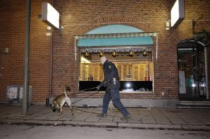 Grannar till en guldsmedsbutik på Järnvägsgatan i Limhamn hörde en kraftig smäll från butiken vid 23.20-tiden. Polisen larmades och kunde konstatera att det inte var fråga om någon bomb utan ett inbrottsförsök. En polishund sniffade i närområdet och andra poliser hittade en konstig yngling som sedan tidigare var känd för inbrott. Ynglingen kontrollerade på platsen av polis.