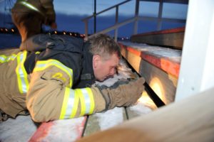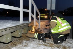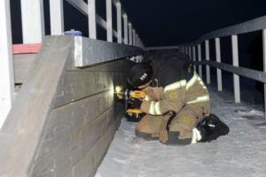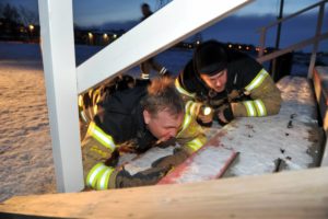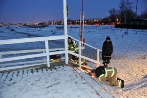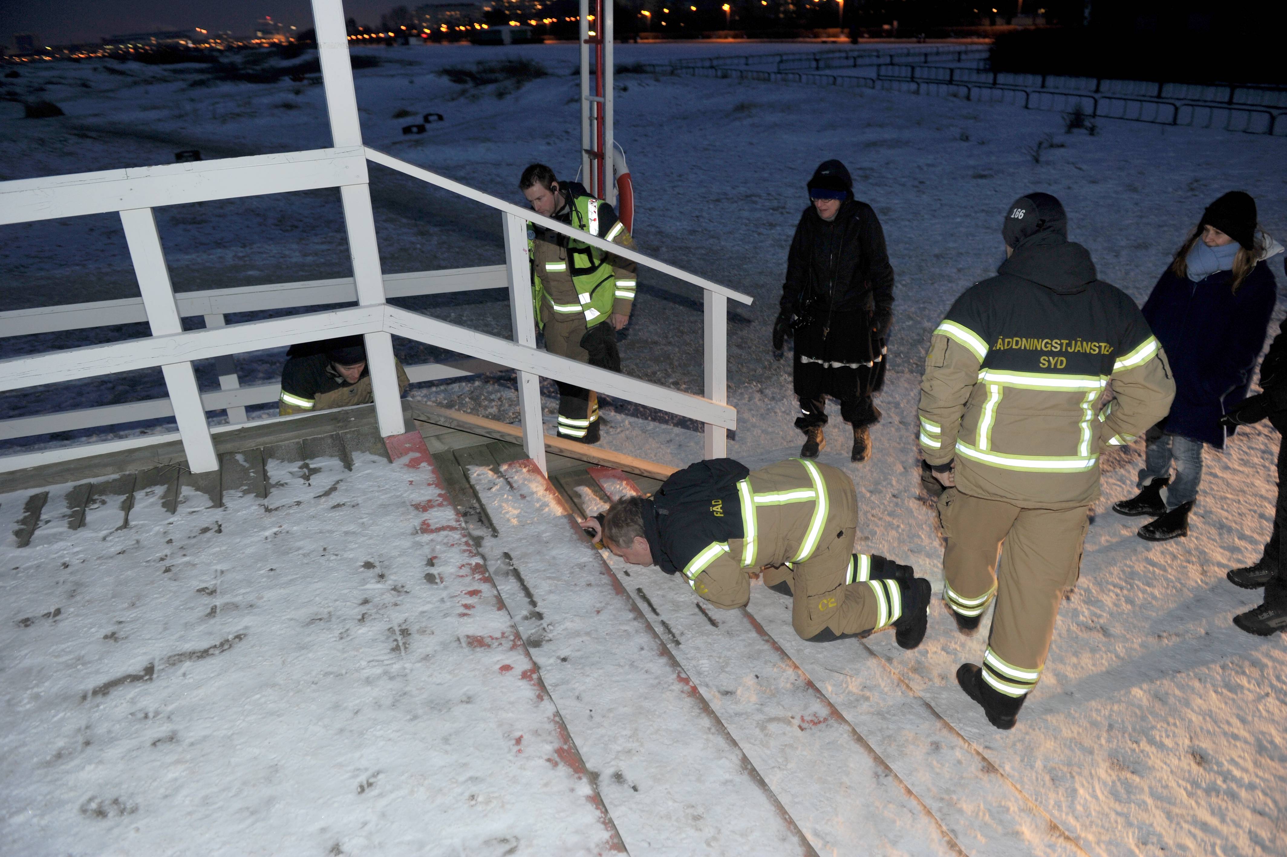 Den tvååriga norfolkterriern Morris kom in under T-bryggan på Ribersborg i kväll vid 16-tiden och lyckades inte ta sig ut igen, trots att matte Marie Lagerlöf med alla medel försökte locka ut sin lilla hund. Flertalet privatpersoner försökte förgäves hjälpa till på olika sätt, men till slut larmades brandkåren. En av brandmännen lyckades krypa in under det trånga utrymmet under bryggan och kunde till slut locka ut Morris med lite hundgodis. Glädjen var stor när Morris återlämnades till sin stelfrusna matte. Nu får han inte vara lös i närheten av bryggan på ett bra tag, sade en märkbart lättad matte innan hon tackade brandpersonalen för deras hjälteinsats.