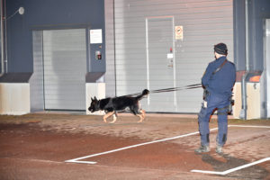 Väktare och polis larmades vid 21-tiden till ett inbrott på ett företag på Kantygegatan. När väktarna kom fram fann man en krossad ruta in till företaget. Polis med hund försökte få upp spår utanför men fick ge upp efter ett 50-tal meter. Troligen har tjuven haft en bil stående bredvid företaget. Även polisens helikopter deltog i sökandet efter den flyende tjuven. Vad som stulits från företaget är i nuläget oklart.