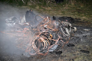Brandkåren från Jägersrostationen larmades vid 00.37 till en bilbrand på Larsbovägen utanför Oxie. När polis och brandstyrkan kom fram kunde man konstatera att någon eldat en större mängd kabel i en skogsdunge. Brandpersonalen släckte branden och polisen upprättade någon form av anmälan om händelsen.
