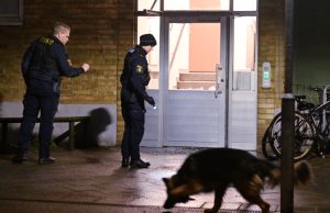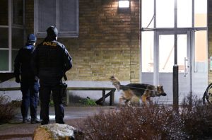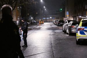 Polisen larmades till en skottlossning av boende strax innan 04 på Agustenborg. När polisen kom fram såg man att rutorna till en entrédörr i en flerfamiljsfastighet hade krossats. På gångbanan utanför hittades flera tomhylsor och inne i porten hittades anslagsmärken från kulorna. Platsen spärrades av i väntan på polistekniker. Inga personer hade skada dats vid beskjutningen. Polispersonal förhörde de som bodde i fastigheten om iakttagelser i samband med skjutningen.