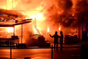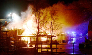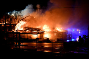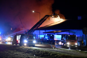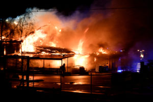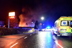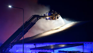 Kraftig brand i byggvaruhus på Böketoftavägen i utkanten av Kågeröd