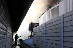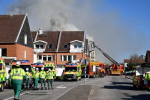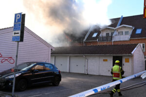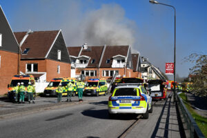 Kraftig brand i radhuslänga vid Lönngatan i Malmö