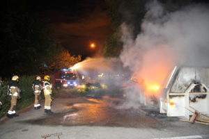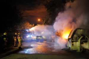 Hylliestationen larmades vid 23.50-tiden till en kraftig brand i en större ontainer på Gånglåtsvägen i Malmö. Containern stod nära parkerade bilar och när styrkan från Hylliestationen anlände begärde man förstärkning av tankbil. Med tankbilens vattenkanon släckte man ner branden och efter en 40 minuter var branden helt släckt.
