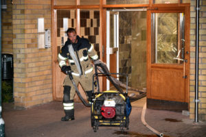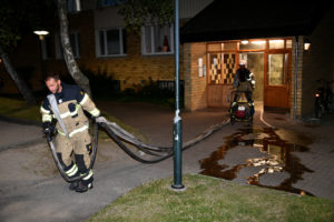 Brandkåren larmades vid 21.35 till en lägenhetsbrand på Gymnasistgatan. När brandstyrkan kom fram kunde man se lågor och rök från en lägenhet på andra våningen i ett hyreshus. Rökdykare med slangledning kunde gå in och släcka branden i lägenheten som var tom på folk. Trapphus och andra lägenheter hade fått in mindre mängder brandrök men inga personer skadades vid branden. En restvärdesledare kallades till platsen för att ta hand om skadorna i den utbrända lägenheten och andra lägenheter som fått in brandrök. I nuläget misstänker polisen någon form av vårdslöshet ligger bakom den våldsamma lägenhetsbranden.