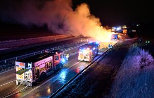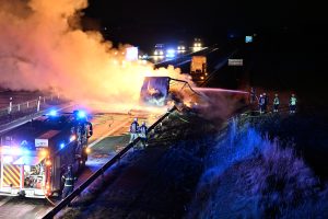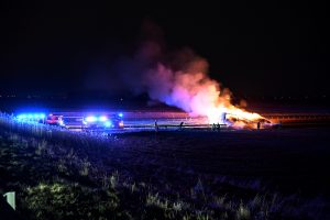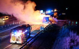 Kraftig lastbilsbrand stängde E6-an Fleninge hela natten
