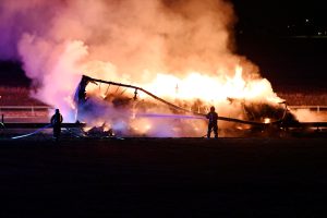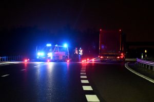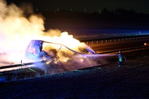 Brandkåren larmades 00.14 till en brinnande lastbil på E6-an norrgående vid Fleninge. När första brandstyrkan kom fram var lastbilssläpet helt övertänt. Släpet var lastat med toalettpapper så branden blev både kraftig och svårsläckt. Lastbilsföraren hade kopplat från lastbilen och kört fram ett hundratal meter. Vid 01-tiden hade trafiken stängts av i både norr och södergående körriktning på E6-an. Först vid 03-tiden kan det bli tal om att släppa på trafiken i södergående ritning. Norrgående körriktning kommer sannolikt att vara avstängd hela natten.
