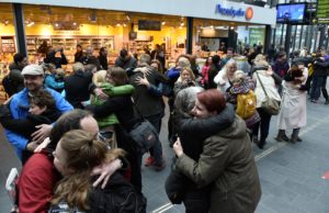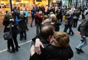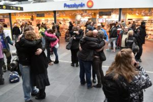 Kramande Flash mob samlades på centralen En kramande Flash mob samlades på centralen i Malmö vid 17-tiden. Ett 50-tal personer kramades med varandra under ett antal minuter inför förvånade resenärer.