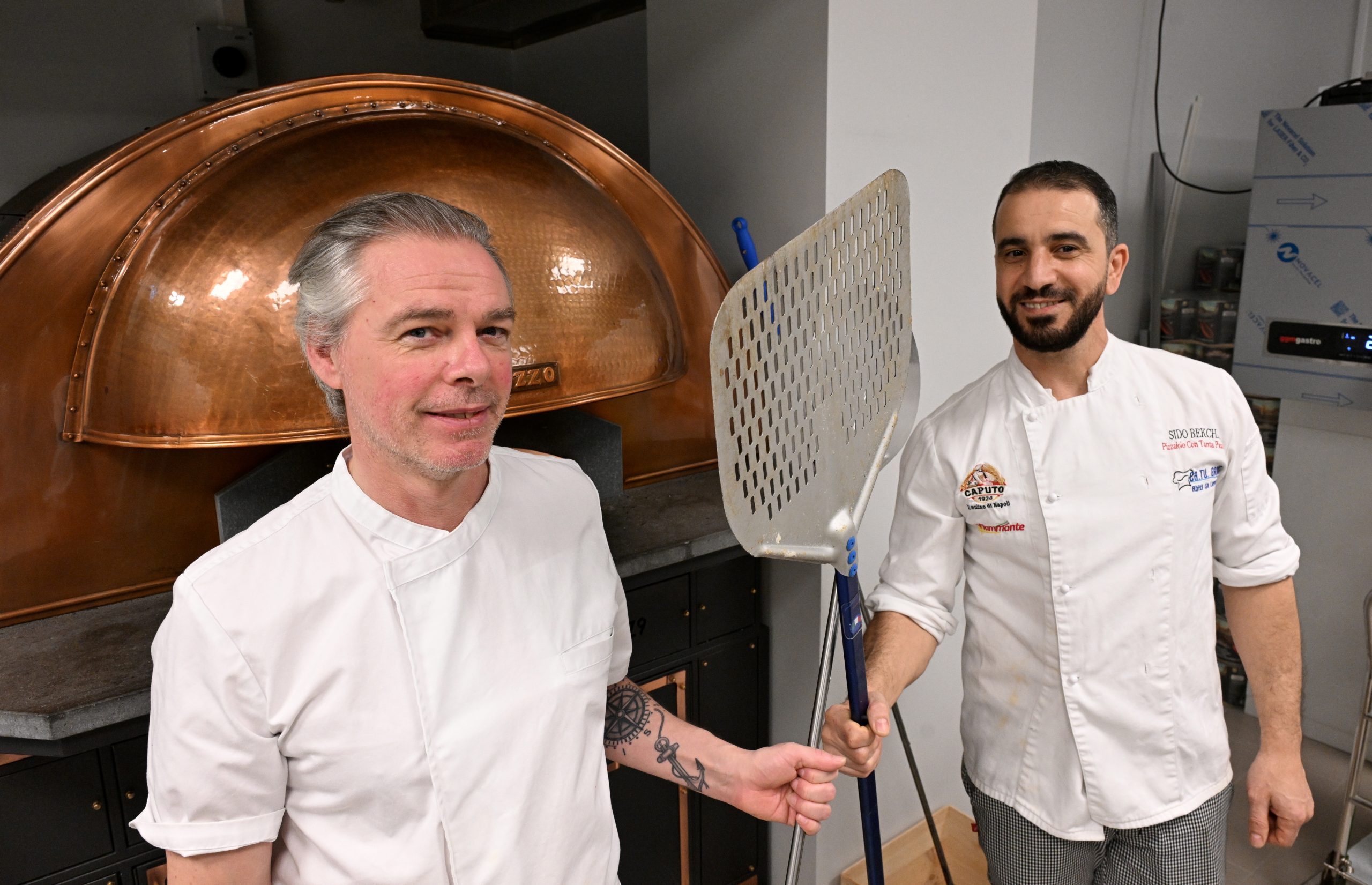 l’Acquafarina på Geijersgatan i Limhamn fick slut på pizzadegen l’Acquafarina på Geijersgatan i Limhamn fick slut på pizzadegen. På bilden från Vänster Johan Gutman och Sidoo Bekchar