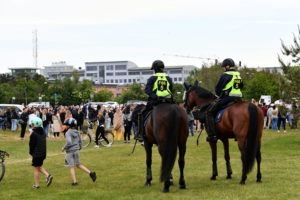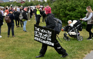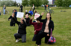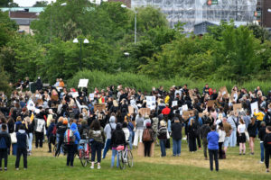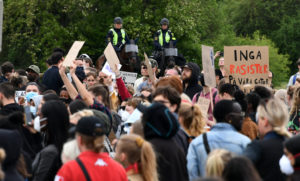 En tillståndsgiven demonstration med 50 personer till stöd för den amerikanska rörelsen Black lives matter hölls vid 18-tiden vid hundrastplatsen på Ribersborg. Redan vid 17.45-tiden hade långt mer än 50 personer samlats. Arrangören drog sig ur och lämnade platsen när polisen vid 18-tiden upplöste demonstrationen då alldeles för många hade samlats på platsen under den pågående Corona pandemin. Enligt polisens talesman Ewa-Gun Westford upplöstes demonstrationen vid 18-tiden men nästan ingen lyssnade på polisen utan demonstrationen fortsatte. Vid 19-tiden sjöng ett mindre antal deltagare slagord mot polisen.