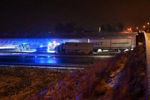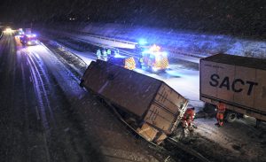 Trafikolycka singel lastbil på E6-an norrgående vid Flädie trafikplats. Räddningstjänst och Trafikverket stängde E6-an vid Flädie trafikplats under räddnings och bärgningsarbetet. Vid 22.30-tiden höll bärgare på att förbereda bärgningsarbetet av lastbilen som vält i mittrenen. Först vid 03-tiden förväntas bärgningsarbetet vara klart. I nuläget är det oklart om lastbilsföraren skadades vid olyckan.