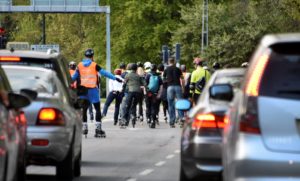 Ett hundratal personer från Malmö City Skaters körde vid 19-tiden genom staden med poliseskort. Den två mil långa rundan i Malmö hade inlagda pauser för att inte trötta ut deltagarna helt.