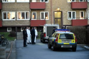 En man hittades avliden i en Ystads lägenhet tidigare under dagen. Polisen kallades till platsen och efter en stund spärrades ett område av runt den hyresfastighet den avlidne anträffats. Polisen misstänker att ett grovt våldsbrott begåtts. Under eftermiddagen jobbade polisens tekniker på platsen mad att sära spår. Flertalet av de boende i fastigheten förhördes av polispersonal, Enligt uppgift skall polisen ha tagit sopor i beslag från ett närbeläget sophus.