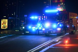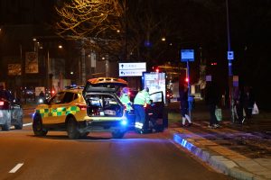 Någon form av olycka vid busshållplatsen vid kyrkan på Eriksfältsgatan vid 17-tidsen. När ambulansen kom fram låg en skadad man på vägbanan vid busshållplatsen. Flera brandbilar och ambulanser larmades till platsen då man befarade att någon blivit överkörd av en buss. När räddningsmanskapet kom fram var ingen buss kvar på platsen. Den skadade mannen omhändertogs av brand och ambulanspersonal. Polis kom till platsen och kunde på platsen förhöra flera vittnen vid busshållplatsen.
