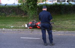 Tullpersonal i en utryckningsbil jagade vid 21.10-tiden en MC på Kalkbrottsgatan i Limhamn. Vid Hyllie Kyrkoväg tappade MC föraren kontrollen över MC-n som gick av vägen in bland större träd. Ambulans och polis kallades till platsen. När ambulansen kom fram kunde man lasta den medvetslöse MC föraren i Ambulansen för transport till akuten. På platsen förhördes tullpersonalen av polisen. En hel del utomstående vittnen såg delar av händelsen. Även dessa vittnen förhördes av polispersonal på platsen. Varför MC föraren inte ville stanna för tullen vet man inte i nuläget.