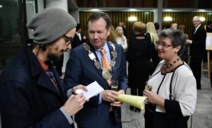 MFF och FC Rosengårdsspelarna intog en gemensam guldmiddag på rådhuset för att fira sina guldinsatser.