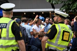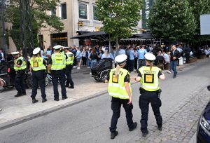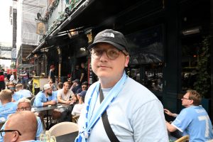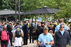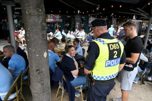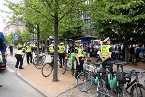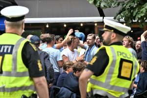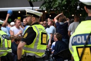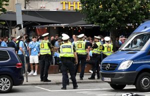 MFF supporters vid Rådhusplatsen i Köpenhamn MFF supporters vid Rådhusplatsen i Köpenhamn inför matchen mellan FCK-MFF på Idrottsparken i Köpenhamn.