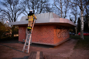 Brandkåren från Hylliestationen larmades vid 18.50-tiden till en brand på taket till en el station vid Hyllie Kyrkoväg. När brandstyrkan kom fram möttes man upp av de som ringt om branden. Ett antal ungdomar hade setts vid el stationen i samband med att branden på taket startade. Brandpersonal tog sig upp på taket och kunde släcka resterna av en brand i tjärpappen på taket till el stationen. Ingen ström behövde brytas i samband med släckningsarbetet.