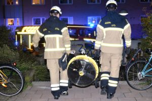 Brandkåren larmades vid 18.15-tiden till en mindre köksbrand på Västra Bernadottesgatan i Limhamn. När brandstyrkan kom fram hade redan personerna i lägenheten lyckats släcka branden i köket men en hel del rök fanns kvar i lägenheten. Brandpersonalen satte in en rökfläkt i trapphuset för att övertrycksventilera lägenheten. Personerna som befann sig i lägenheten kontrollerades av ambulanspersonal men behövd,köksbrande inte åka med till sjukhuset. Efter ca 20 minuter hade all rök vädrats ur lägenheten och brandpersonalen kunde återgå.